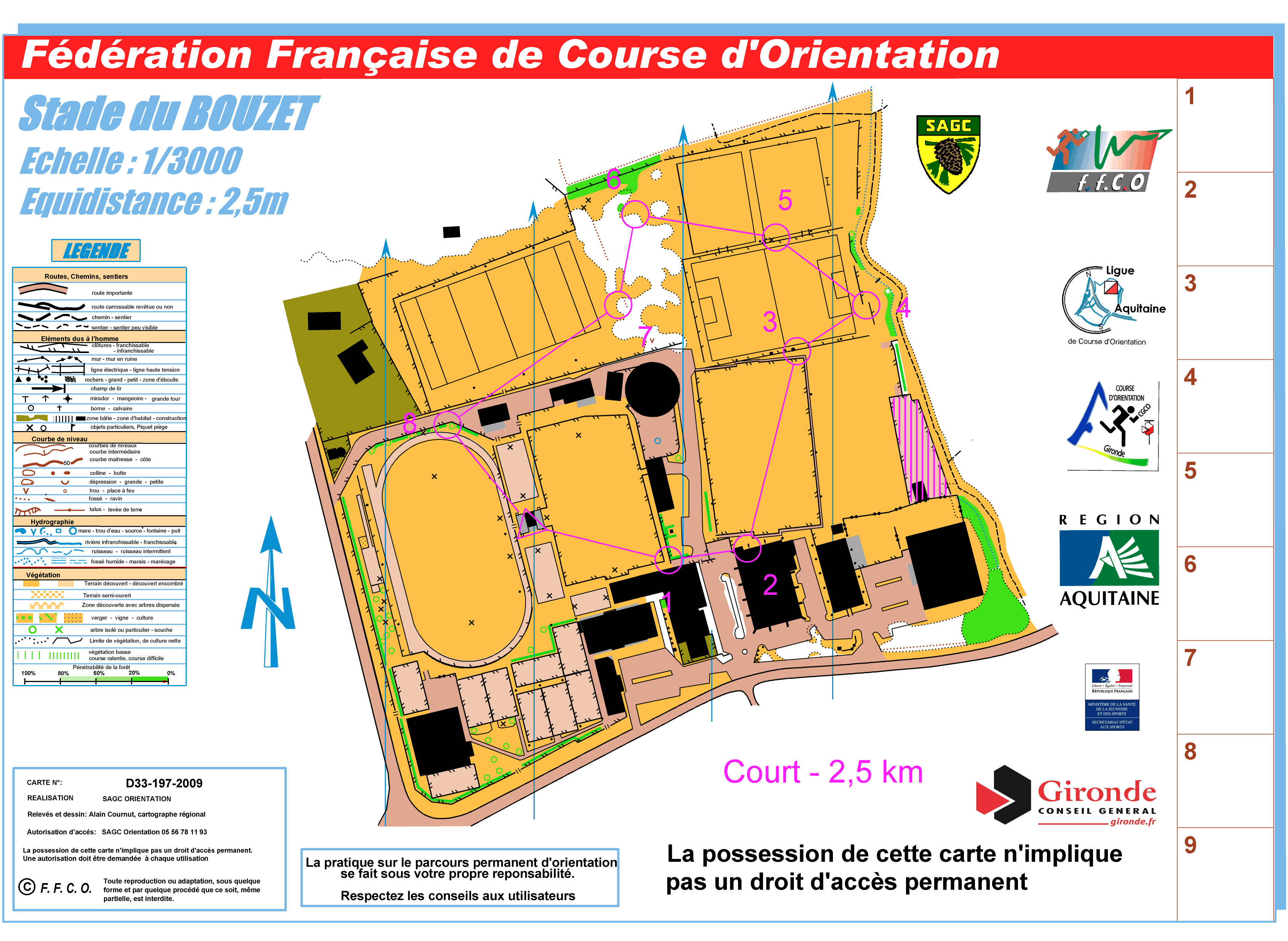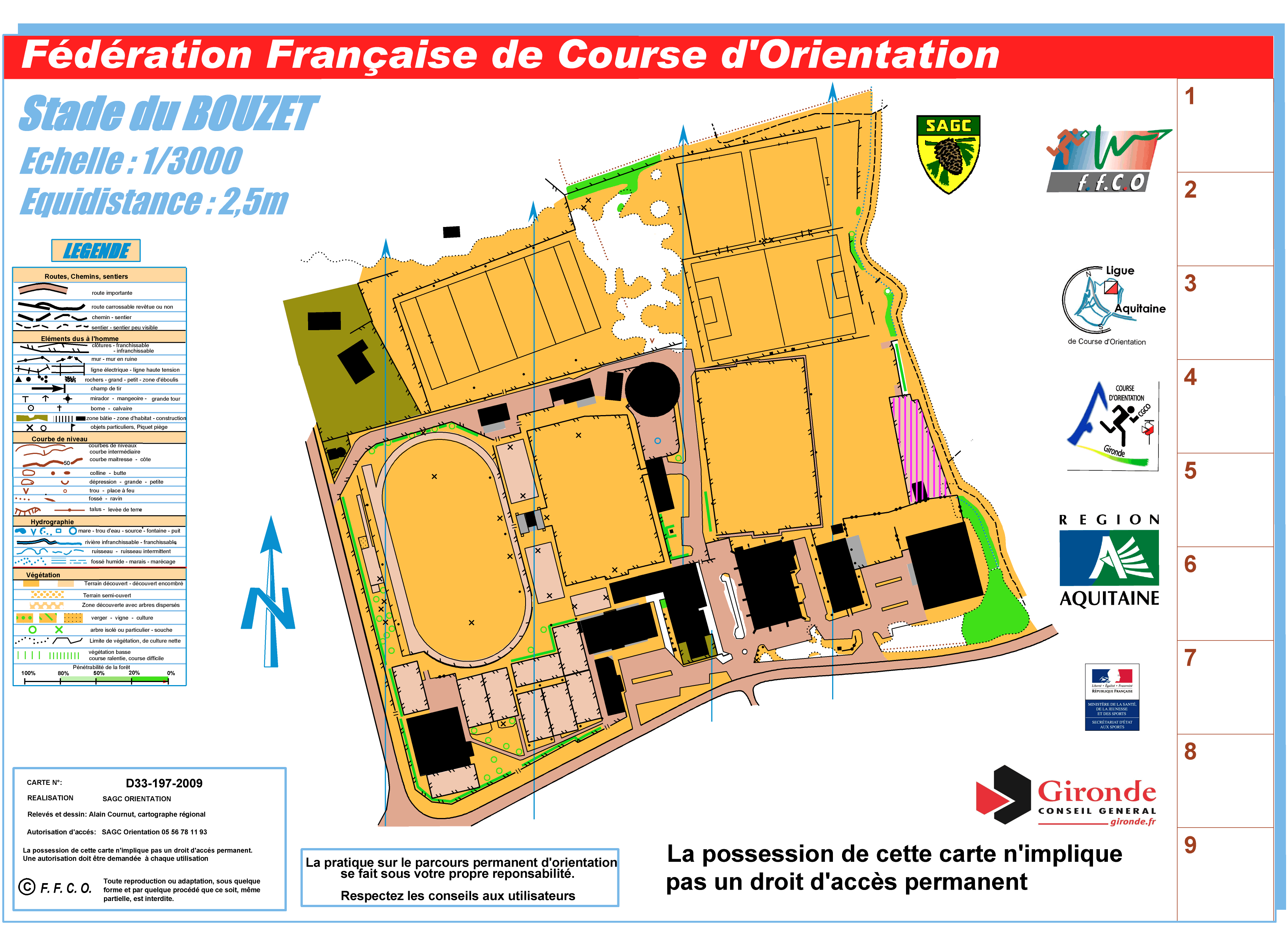 Pour vous permettre de pratiquer la Course d'Orientation plus facilement, la Mairie de Cestas et le club du SAGC ont mis en place un réseau de postes permanents dans le stade du Bouzet.