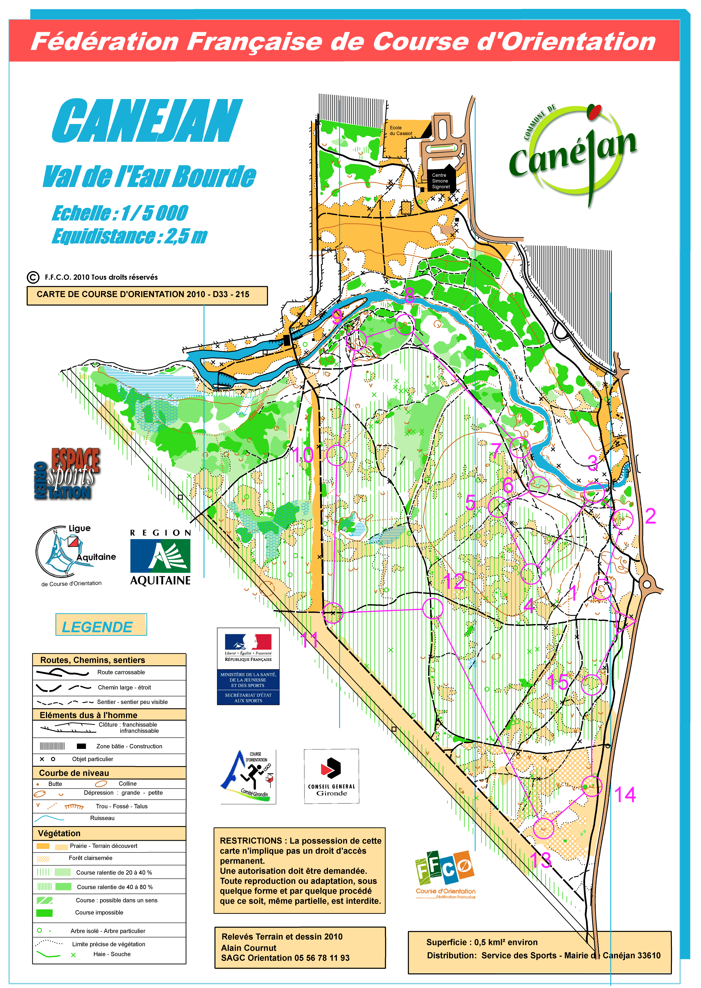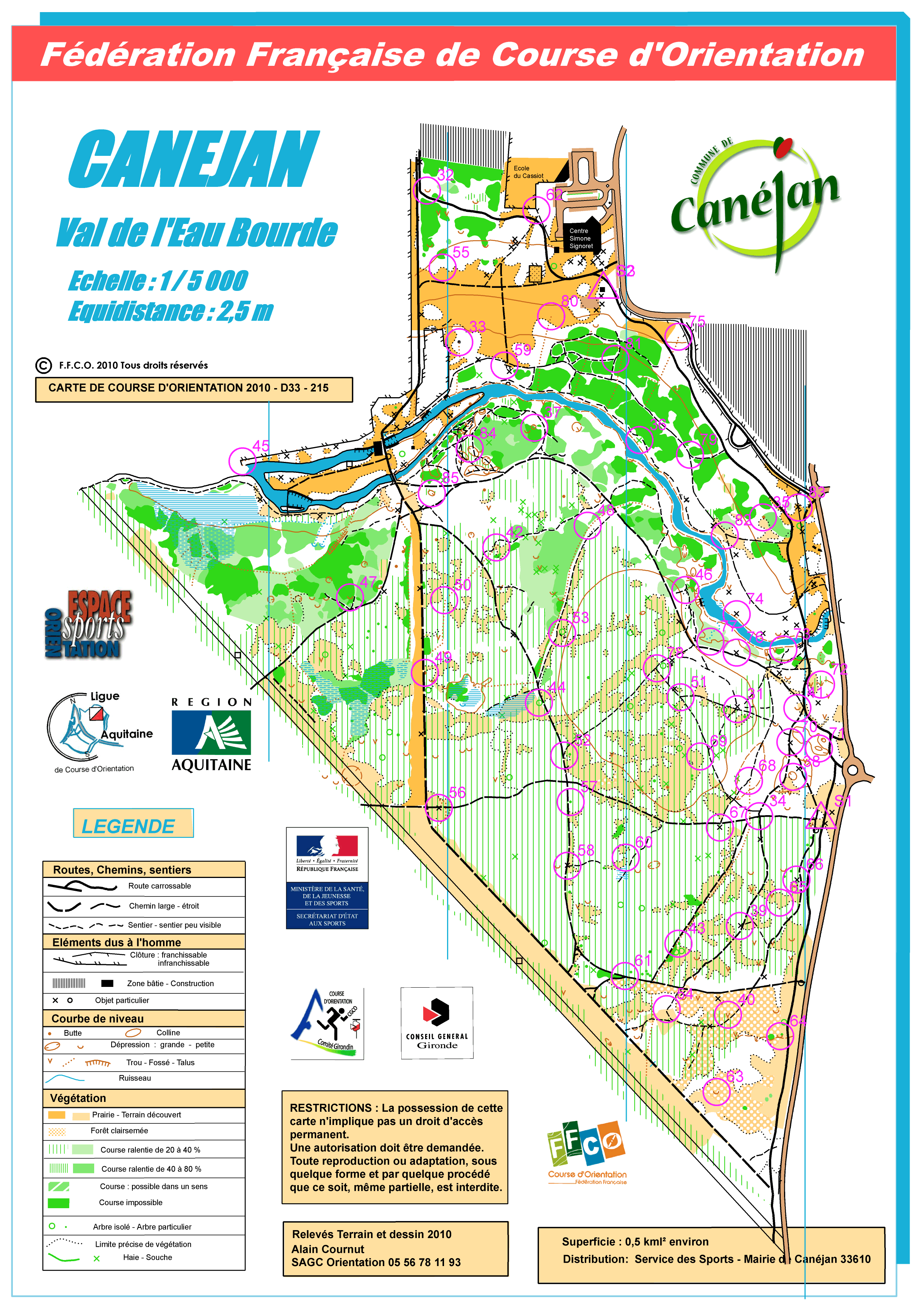 Pour vous permettre de pratiquer la Course d'Orientation plus facilement, la Mairie de Canéjan et le club du SAGC ont mis en place un réseau de postes permanents dans le bois du ruisseau de l'Eau Bourde.