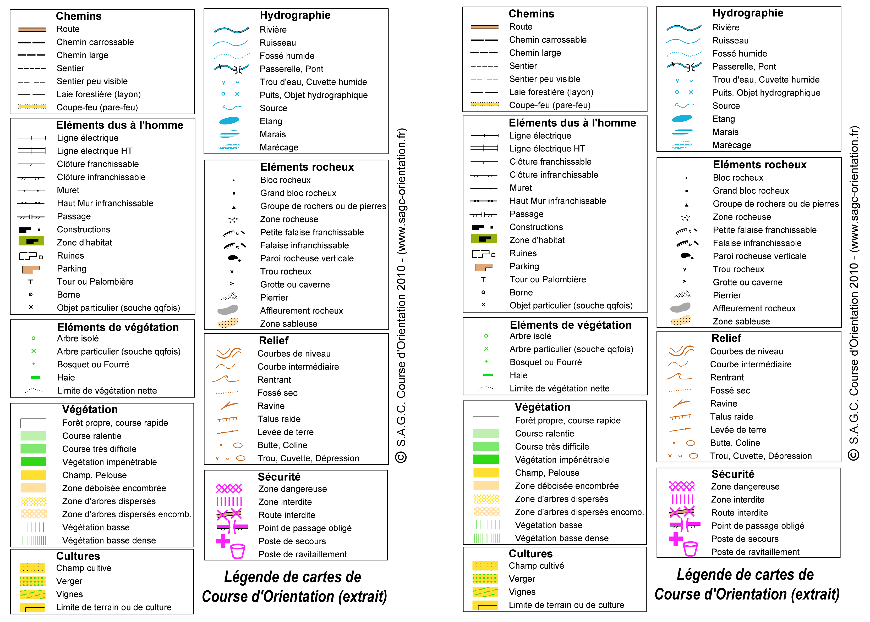La course d'orientation se pratique avec des cartes en couleurs. Ne faites pas de copie Noir & Blanc.